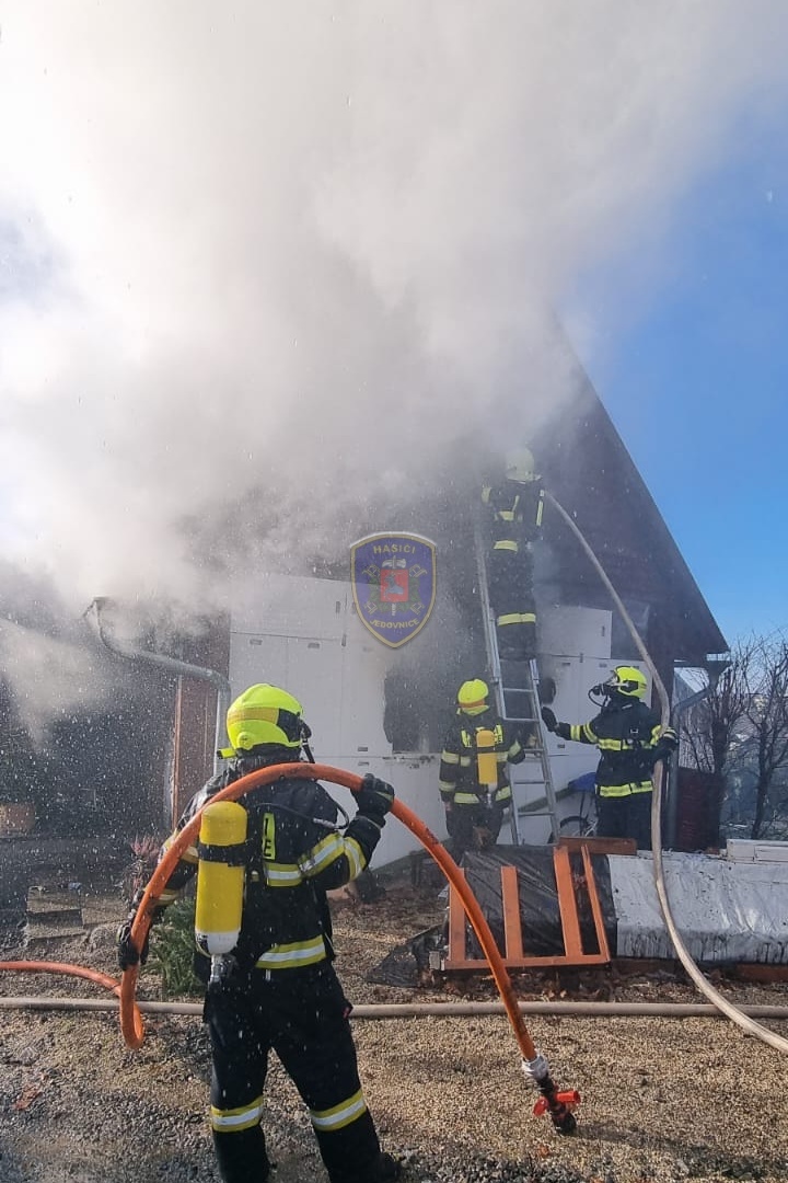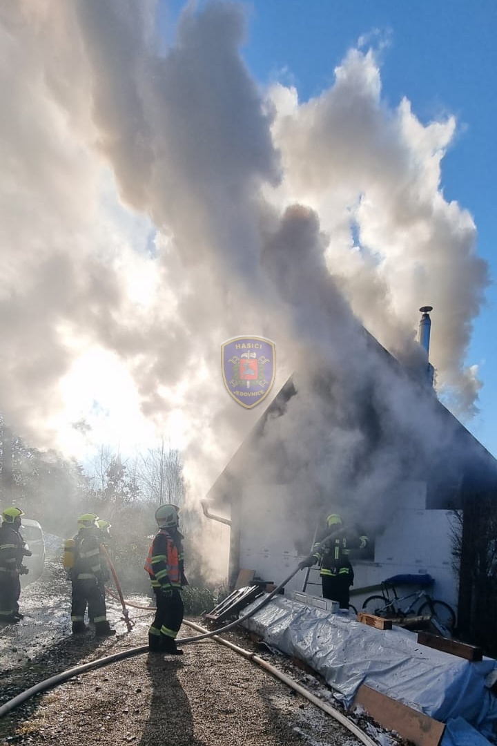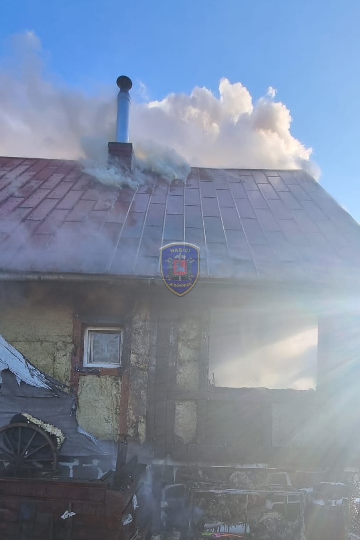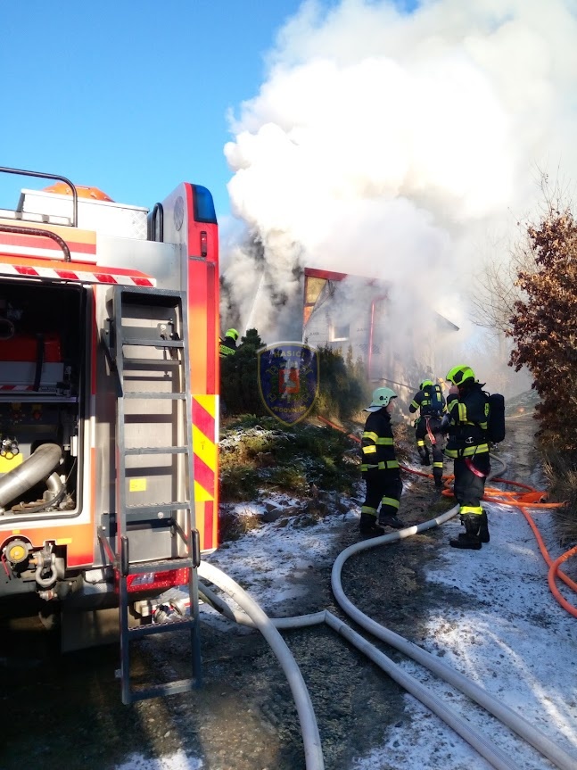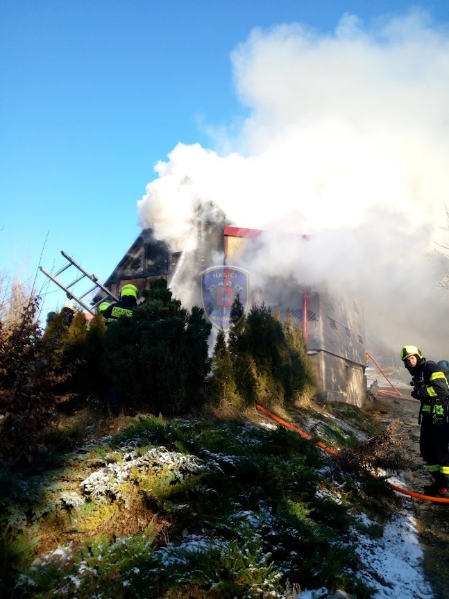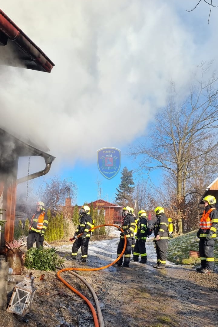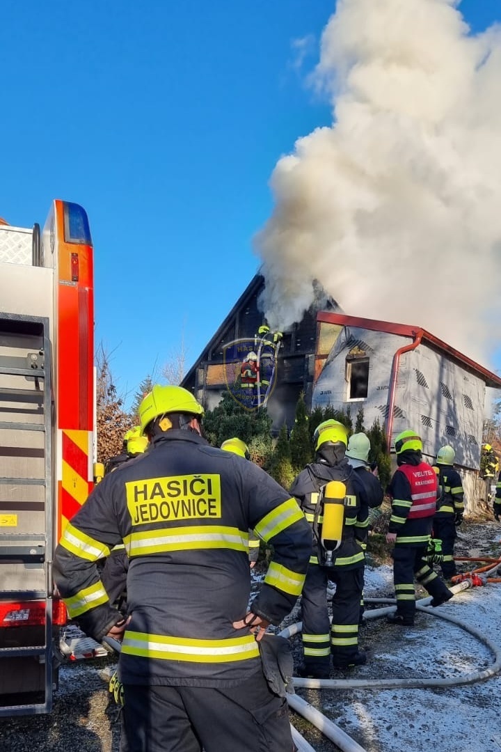 Dne 20. 1. 2024 ve 13:32 vyjela naše jednotka k požáru chaty v Jedovnicích. Po příjezdu na místo bylo zjištěno, že se jedná o požár dvoupodlažní rekreační chaty v plném rozsahu. Obyvatelé chaty se nachází mimo objekt. Naše jednotka, vystrojená v dýchací technice, nasadila na hašení požáru 2xC proud. Velitel po průzkumu ihned zažádal o vyslání posilových jednotek. Z důvodu velké intenzity požáru byl zásah veden z počátku z venkovní strany a až následně vnitřním prostorem. Obyvatelům byl poskytnut tepelný komfort v zásahovém vozidle a ošetřena drobná zranění. Pro kontrolu zdravotního stavu byla povolána ZZS. Po příjezdu dalších jednotek bylo postupně nasazeno 5C proudů a jeden vysokotlaký se speciálním hasícím hřebem. Současně bylo zajištěno doplňování vody do zasahujících cisteren. Po provedení lokalizace požáru prováděly jednotky postupné dohašování ohnisek a rozebírání konstrukce a plechové střešní krytiny. Po likvidaci požáru a kontrole termokamerou se jednotky začaly postupně vracet na své základny. Naše jednotka zůstala na místě jako dohled nad místem požáru do ranních hodin.