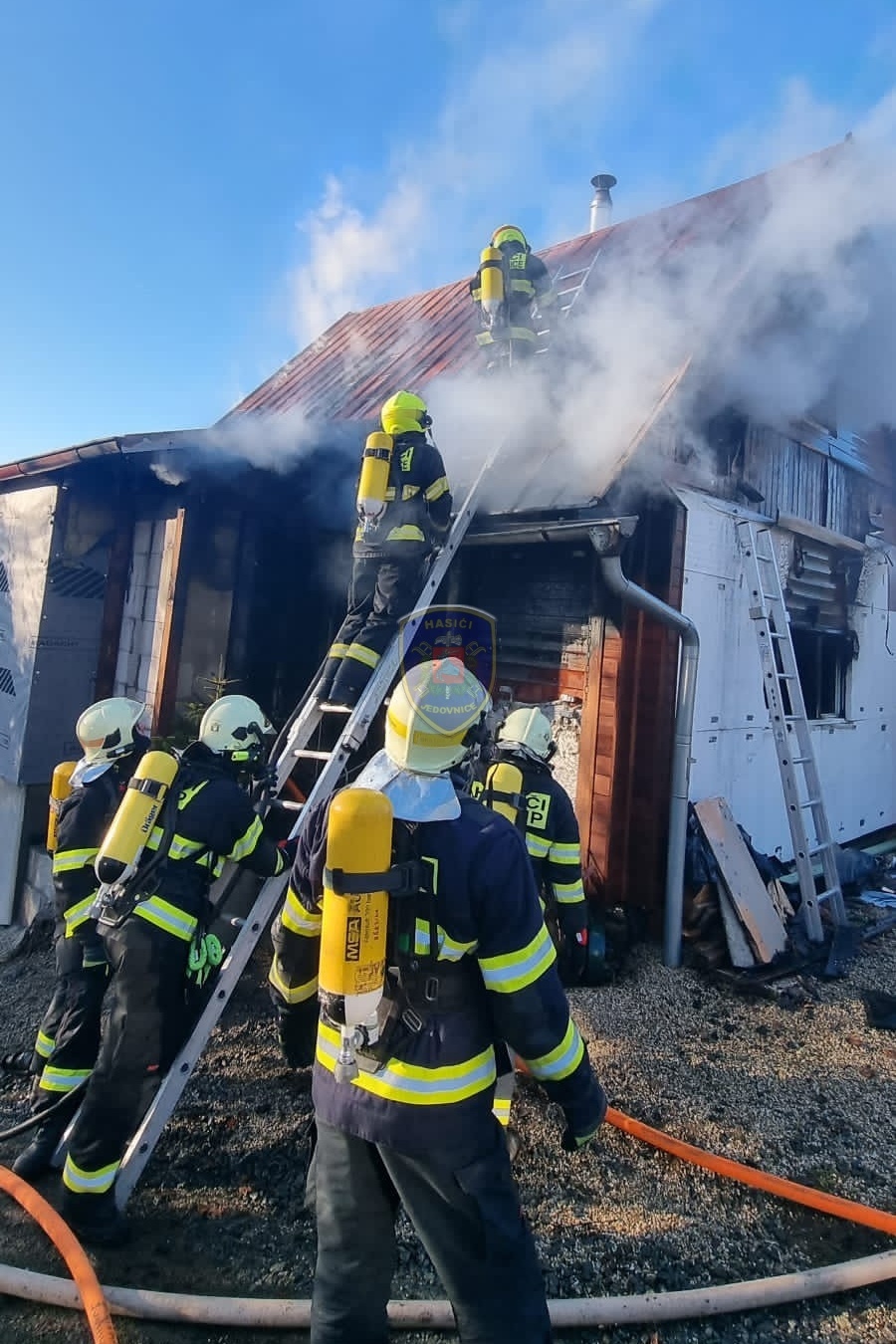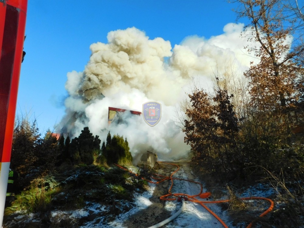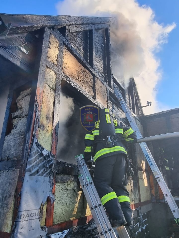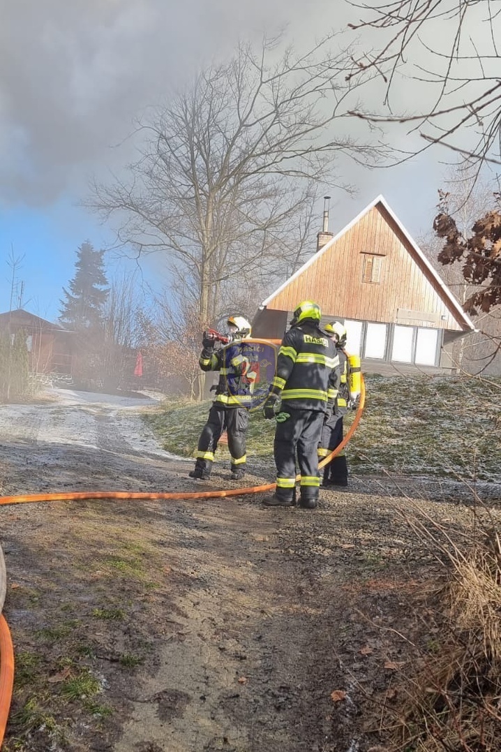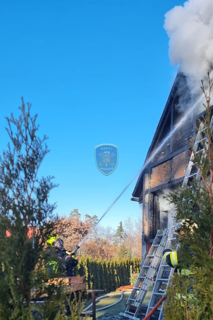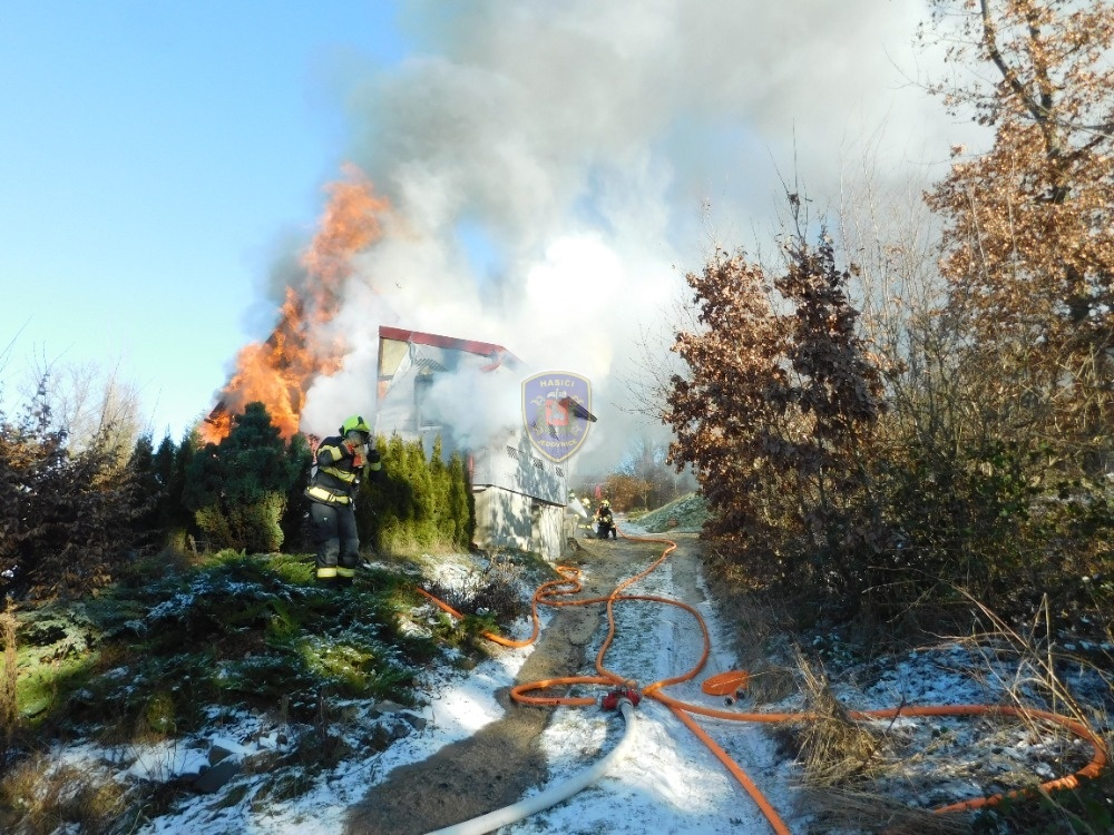 Dne 20. 1. 2024 ve 13:32 vyjela naše jednotka k požáru chaty v Jedovnicích. Po příjezdu na místo bylo zjištěno, že se jedná o požár dvoupodlažní rekreační chaty v plném rozsahu. Obyvatelé chaty se nachází mimo objekt. Naše jednotka, vystrojená v dýchací technice, nasadila na hašení požáru 2xC proud. Velitel po průzkumu ihned zažádal o vyslání posilových jednotek. Z důvodu velké intenzity požáru byl zásah veden z počátku z venkovní strany a až následně vnitřním prostorem. Obyvatelům byl poskytnut tepelný komfort v zásahovém vozidle a ošetřena drobná zranění. Pro kontrolu zdravotního stavu byla povolána ZZS. Po příjezdu dalších jednotek bylo postupně nasazeno 5C proudů a jeden vysokotlaký se speciálním hasícím hřebem. Současně bylo zajištěno doplňování vody do zasahujících cisteren. Po provedení lokalizace požáru prováděly jednotky postupné dohašování ohnisek a rozebírání konstrukce a plechové střešní krytiny. Po likvidaci požáru a kontrole termokamerou se jednotky začaly postupně vracet na své základny. Naše jednotka zůstala na místě jako dohled nad místem požáru do ranních hodin.