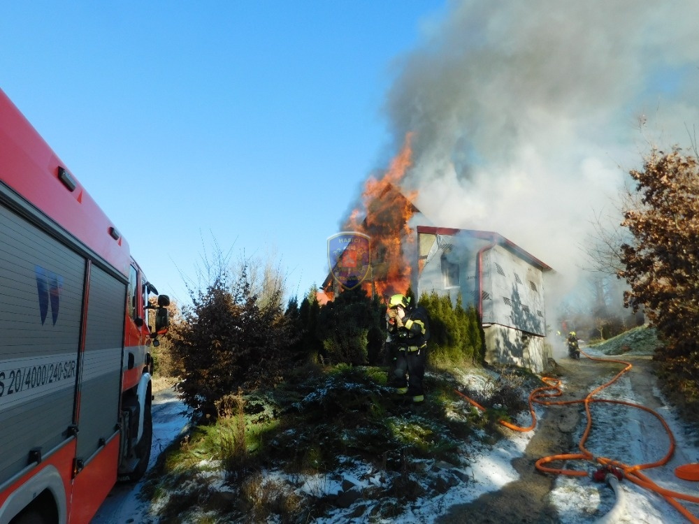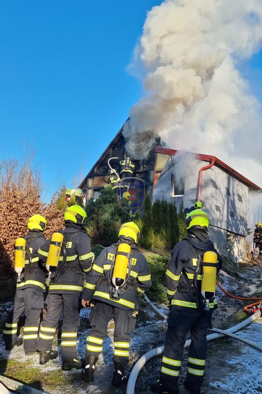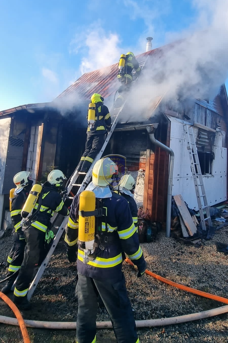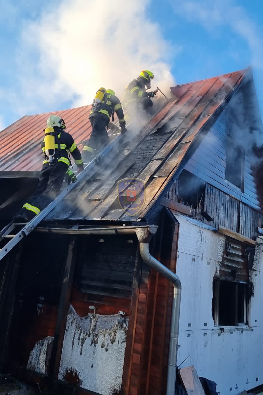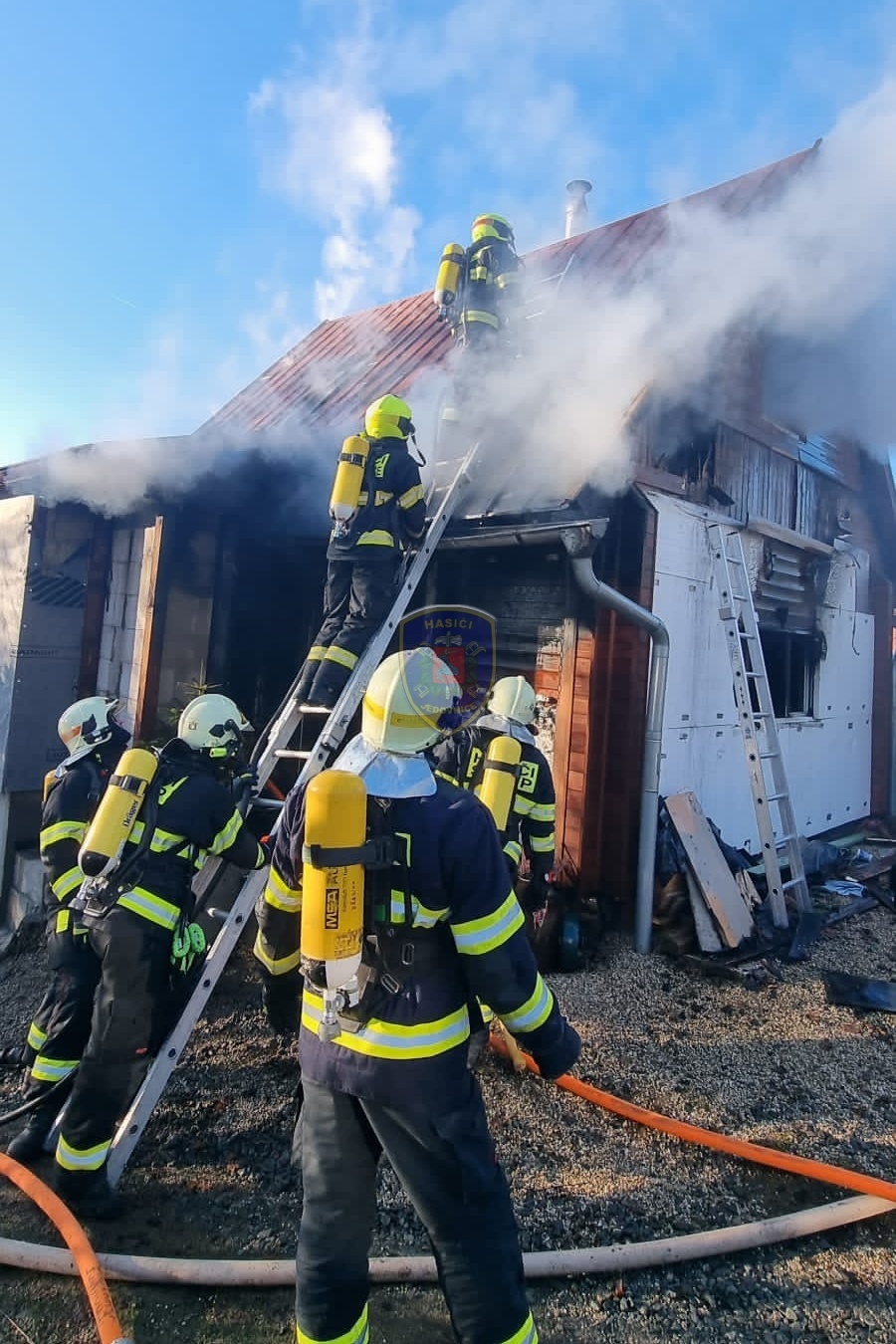 Dne 20. 1. 2024 ve 13:32 vyjela naše jednotka k požáru chaty v Jedovnicích. Po příjezdu na místo bylo zjištěno, že se jedná o požár dvoupodlažní rekreační chaty v plném rozsahu. Obyvatelé chaty se nachází mimo objekt. Naše jednotka, vystrojená v dýchací technice, nasadila na hašení požáru 2xC proud. Velitel po průzkumu ihned zažádal o vyslání posilových jednotek. Z důvodu velké intenzity požáru byl zásah veden z počátku z venkovní strany a až následně vnitřním prostorem. Obyvatelům byl poskytnut tepelný komfort v zásahovém vozidle a ošetřena drobná zranění. Pro kontrolu zdravotního stavu byla povolána ZZS. Po příjezdu dalších jednotek bylo postupně nasazeno 5C proudů a jeden vysokotlaký se speciálním hasícím hřebem. Současně bylo zajištěno doplňování vody do zasahujících cisteren. Po provedení lokalizace požáru prováděly jednotky postupné dohašování ohnisek a rozebírání konstrukce a plechové střešní krytiny. Po likvidaci požáru a kontrole termokamerou se jednotky začaly postupně vracet na své základny. Naše jednotka zůstala na místě jako dohled nad místem požáru do ranních hodin.