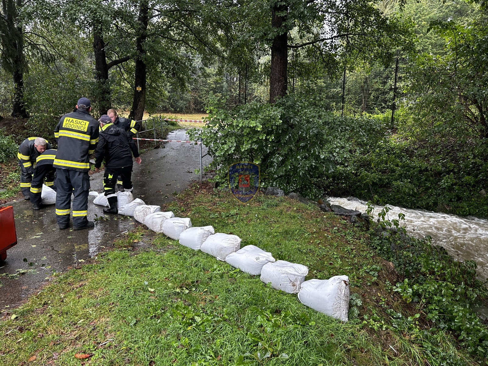 - v 15:14 byla povolána s CAS 20 Scania a DA Ford Transit k pytlování pytlů s pískem v Jedovnicích, na Panském dvoře. Zde spolupráce s policií městyse a pracovníky zeleně. Jednotka rozdělena na 3 části: velení, plnící stanoviště a usazování pytlů. Postupně nainstalována protipovodňová zábrana v lokalitě Salajna, Stará huť a Mlýn. Večer provedeno zapytlování vyústění Dymáku. Poté přejezd k rybníku Olšovec, který byl na 3. stupni povodňové aktivity. Na místo povolána ještě jednotka SDH Krasová. Na hráz nainstalována protipovodňová zábrana. Nachystána ještě pohotovostní rezerva pytlů. Návrat na základnu v 1:00.