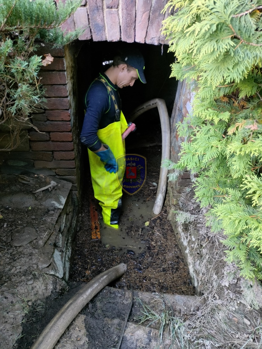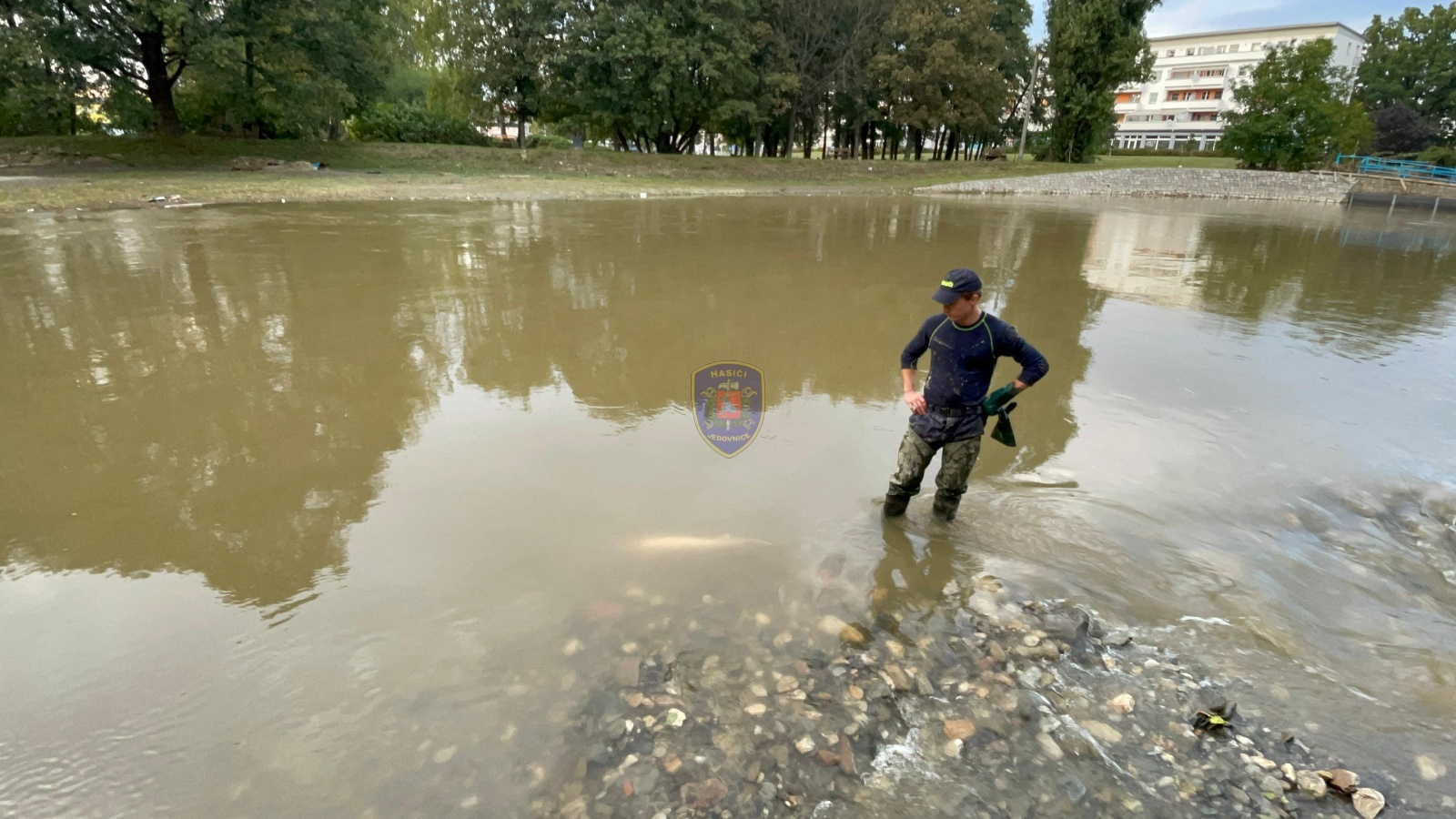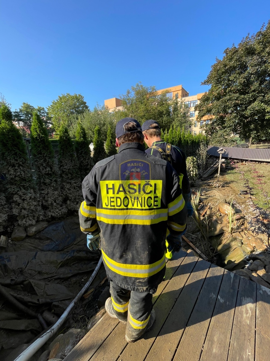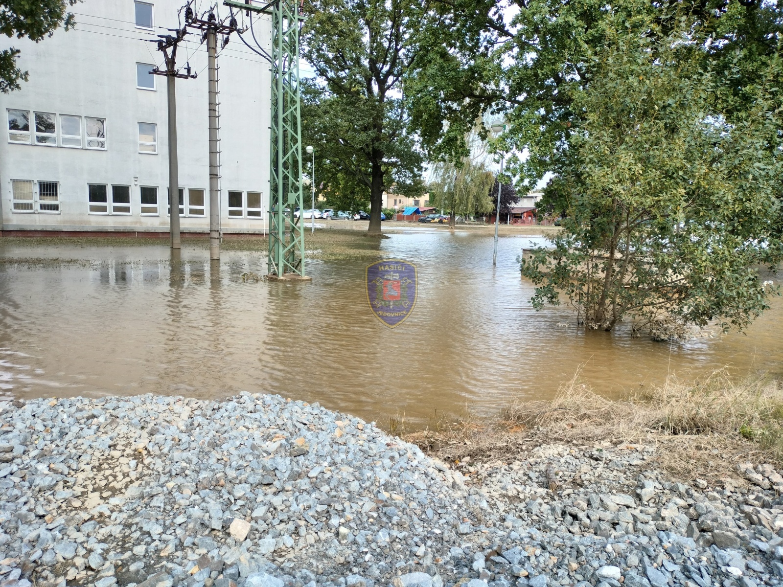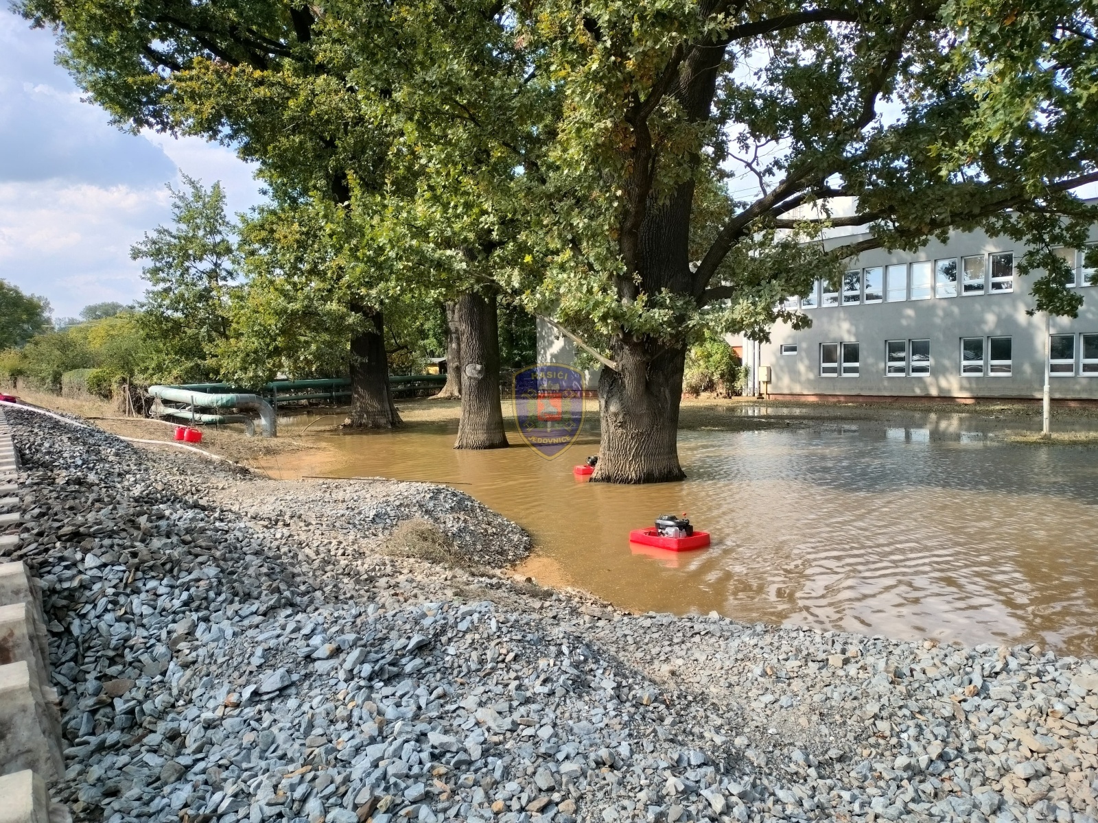 Dnes byla celý den nasazena v Krnově. Po příjezdu byla rozdělena na dvě družstva. Jedno pokračovalo ve včerejším čerpání laguny ve výrobním podniku a druhé provádělo čerpání zatopených sklepů a lagun v zahradách. Z jedné laguny zachránila jesetera, kterého vypustila do přirozeného prostředí.