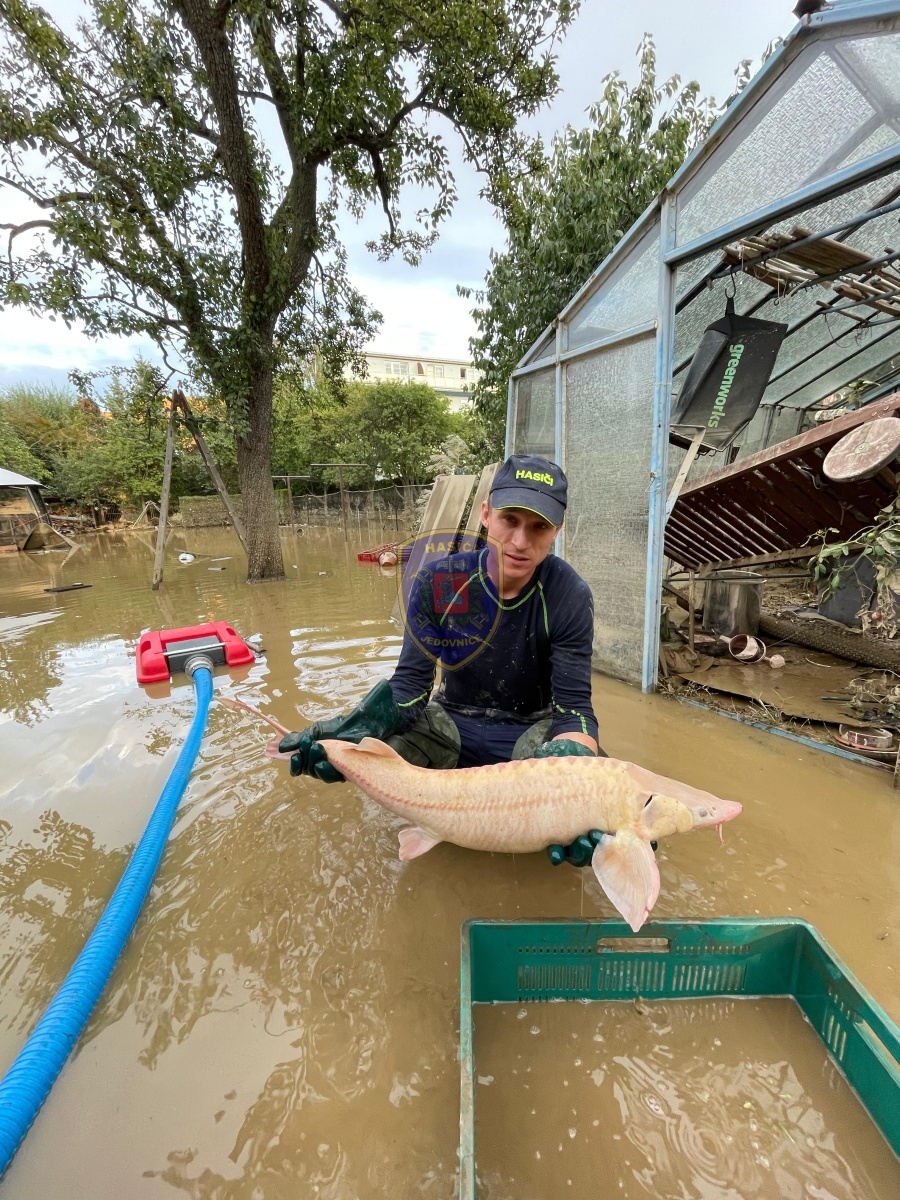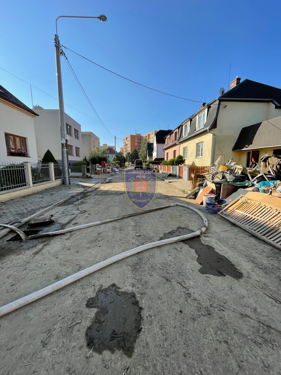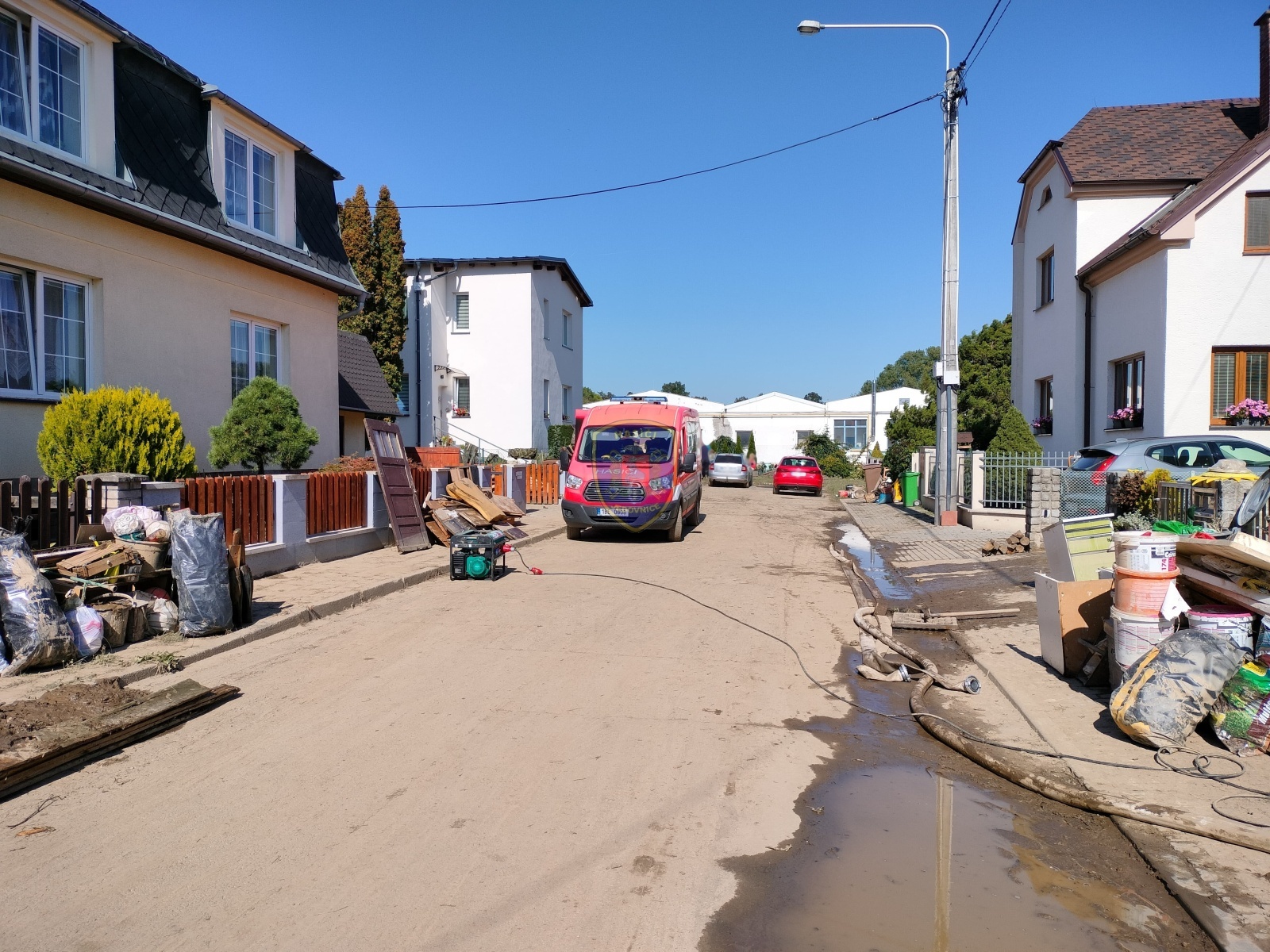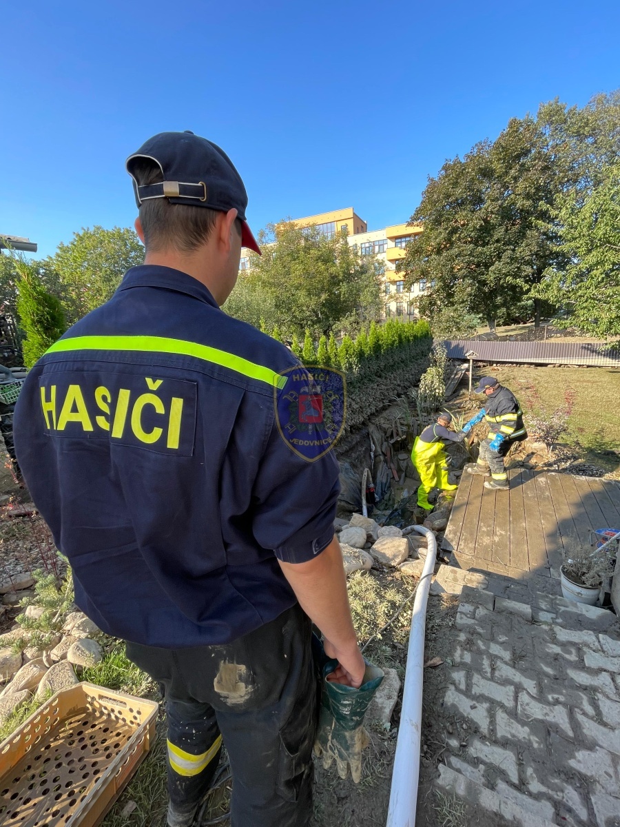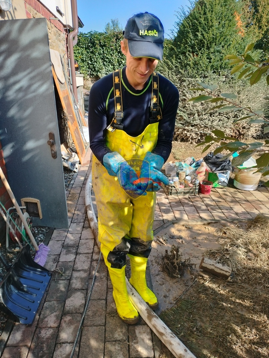 Dnes byla celý den nasazena v Krnově. Po příjezdu byla rozdělena na dvě družstva. Jedno pokračovalo ve včerejším čerpání laguny ve výrobním podniku a druhé provádělo čerpání zatopených sklepů a lagun v zahradách. Z jedné laguny zachránila jesetera, kterého vypustila do přirozeného prostředí.