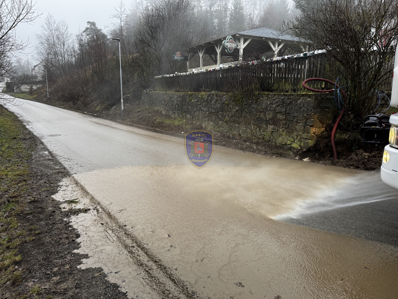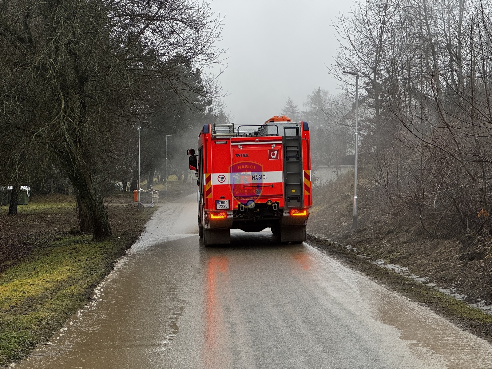 Dne 22. 12. 2025 provedla jednotka oplach komunikací po výkopových pracích na ulici Podhájí a Na Kopci.