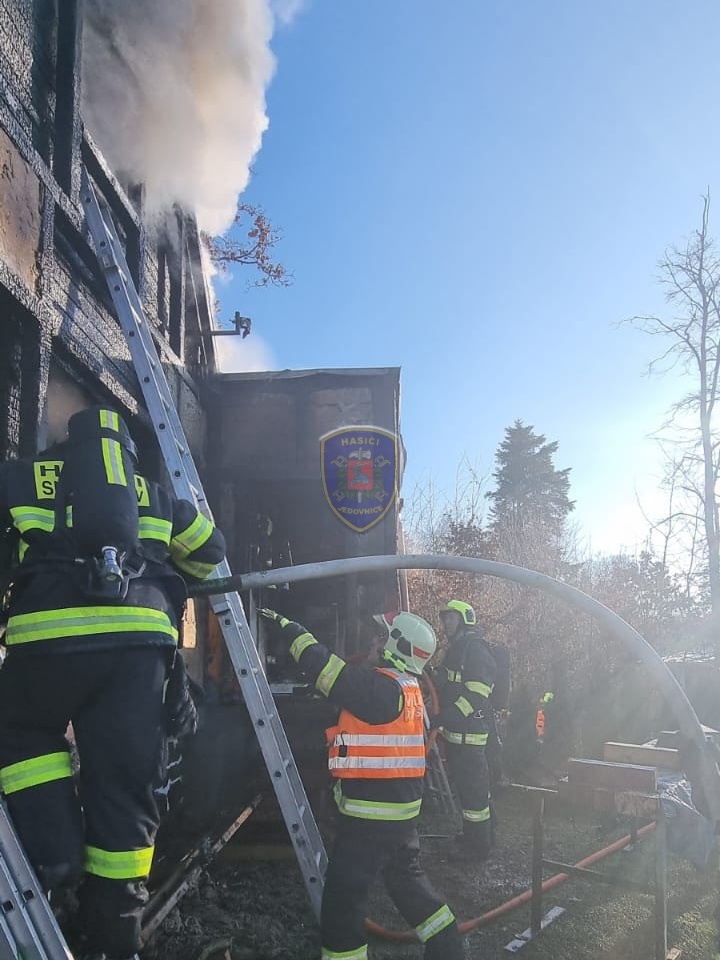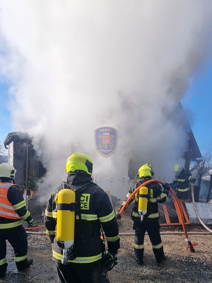 Dne 20. 1. 2024 ve 13:32 vyjela naše jednotka k požáru chaty v Jedovnicích. Po příjezdu na místo bylo zjištěno, že se jedná o požár dvoupodlažní rekreační chaty v plném rozsahu. Obyvatelé chaty se nachází mimo objekt. Naše jednotka, vystrojená v dýchací technice, nasadila na hašení požáru 2xC proud. Velitel po průzkumu ihned zažádal o vyslání posilových jednotek. Z důvodu velké intenzity požáru byl zásah veden z počátku z venkovní strany a až následně vnitřním prostorem… (celý článek)