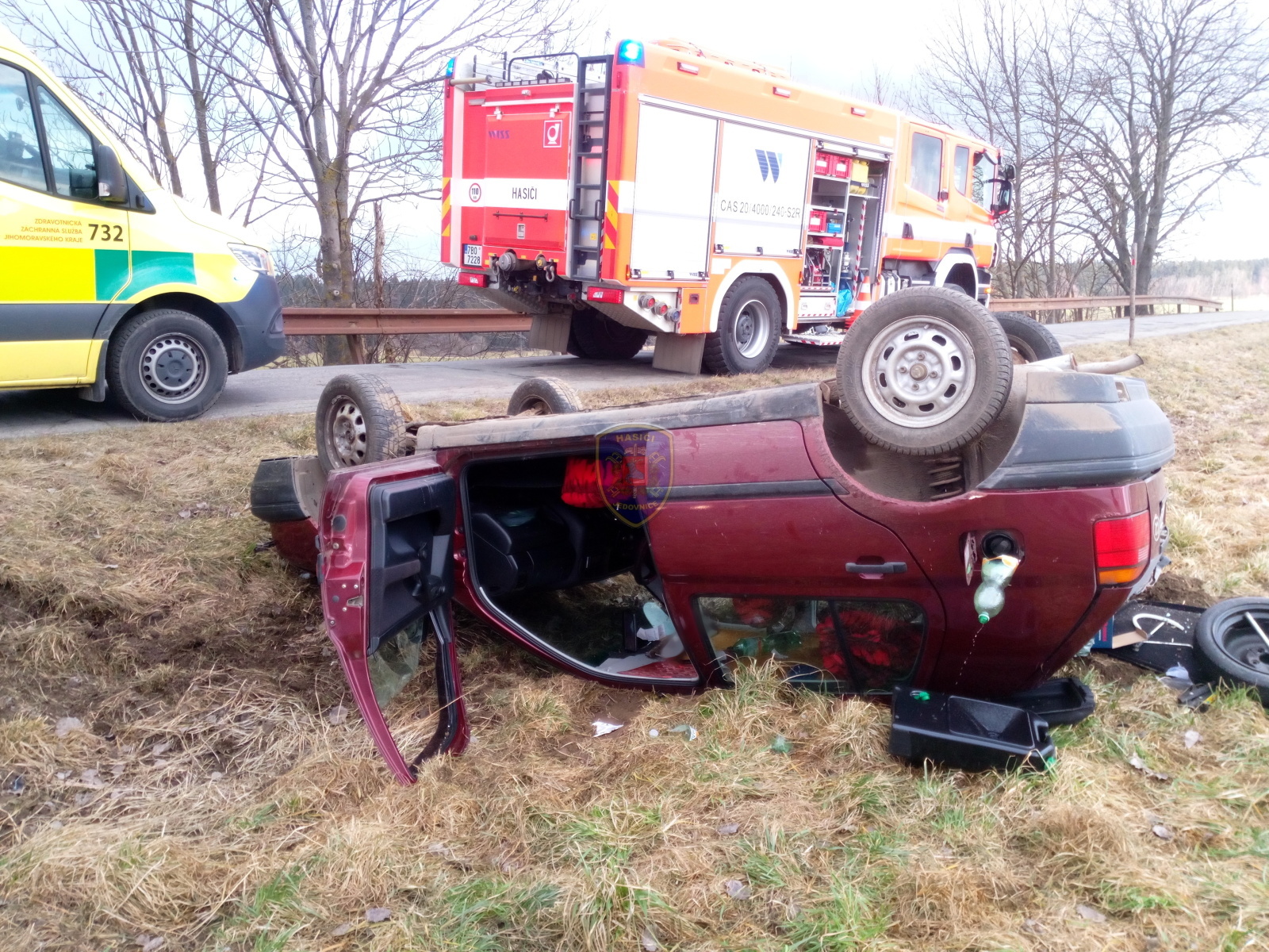 Dne 13. 2. 2024 v 9:54 vyjela naše jednotka k dopravní nehodě u Lipovce, směrem na Rozstání. Po příjezdu na místo bylo zjištěno, že se jedná o dopravní nehodu jednoho osobního automobilu, který skončil přetočený na střechu, mimo komunikaci. Naše jednotka zajistila místo události, provedla protipožární opatření a začala zachytávat unikající benzín do záchytné vaničky. Jedné osobě poskytla tepelný komfort v DA a přivolala na místo ZZS… (celý článek)